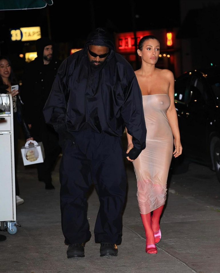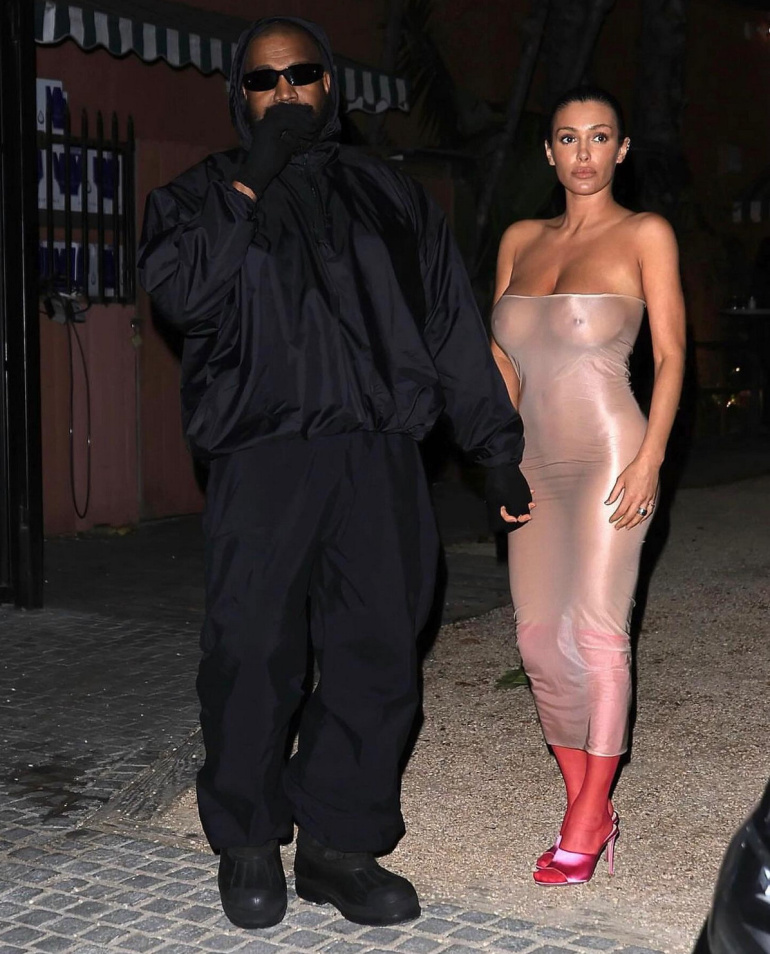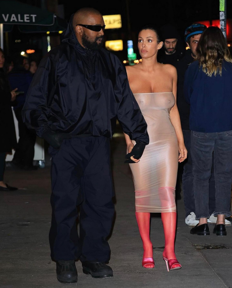 В то время как рэпер был одет с ног до головы в черное, его 29-летнюю партнершу невозможно было не заметить в полностью прозрачном платье и без нижнего белья.