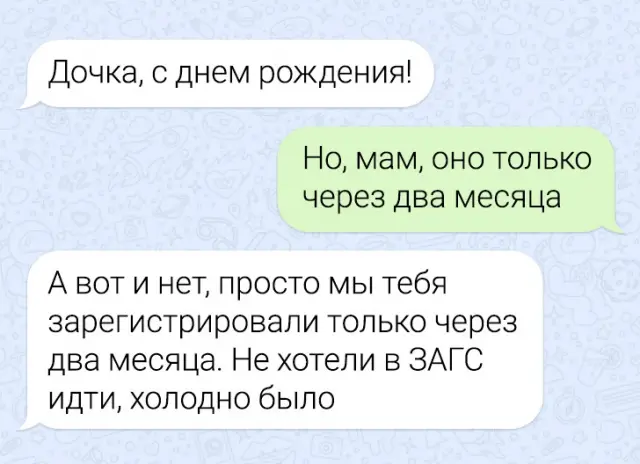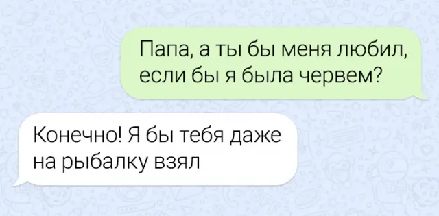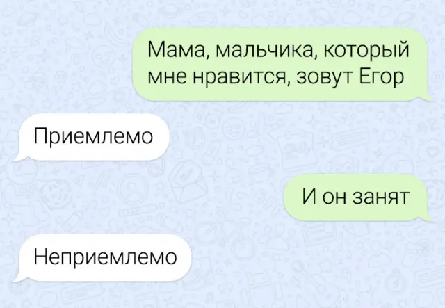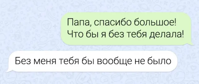 Коллекция забавных переписок с родителями. Смешные скриншоты для скучного дня! Приколы 23-04-2024, 11:19 259 Лови, порцию в нашу новую коллекцию пикантных переписей с мамкой и папкой!