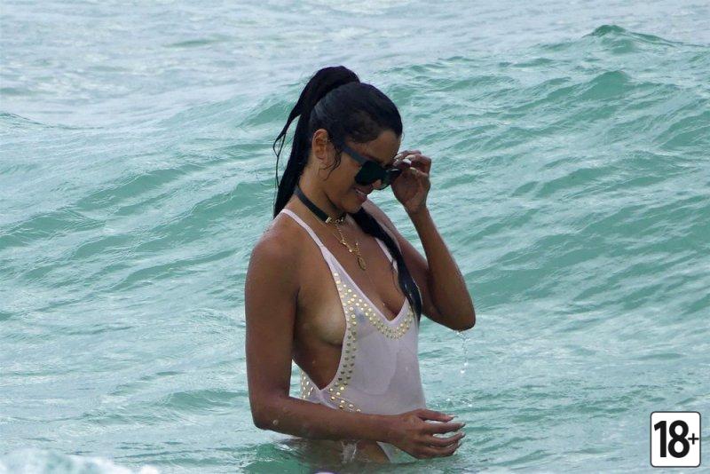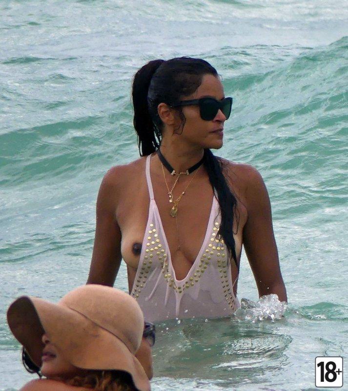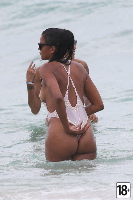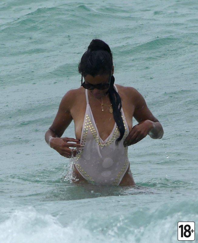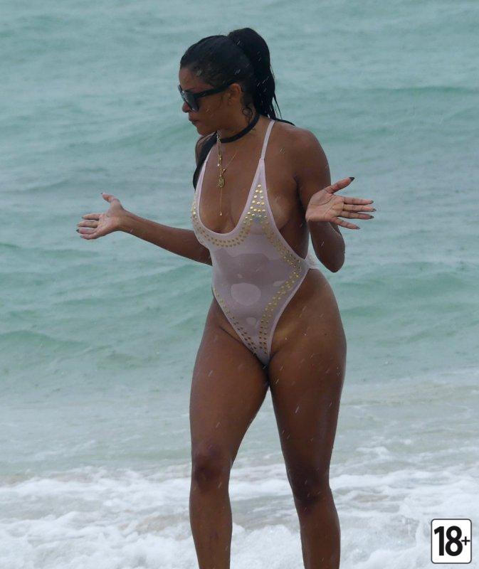Фото, которое она опубликовала, сразу привлекло внимание — грудь Клаудии Джордан, как всегда, была в центре внимания. На пляже в Майами она позволила себе немного непринуждённости, и фото получилось по-настоящему жарким.