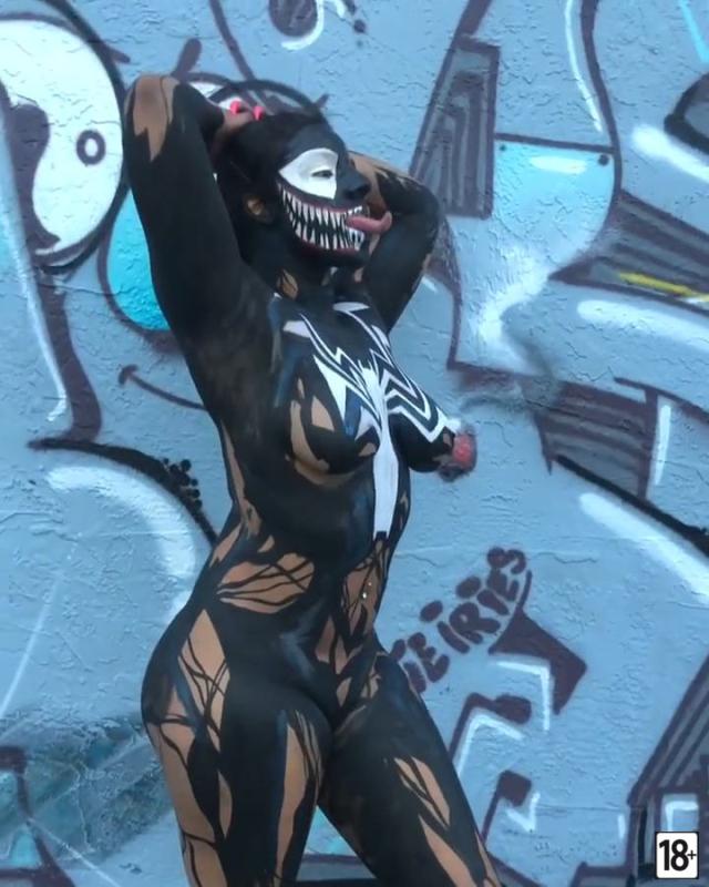 Микайла, число подписчиков которой превышает 2,2 миллиона человек, прошлась перед камерой по улице полностью голой, использовав для «костюма» Венома одну лишь краску для тела. Особенно пользователей впечатлил ее язык — длиной, как сообщает британское издание The Mirror, около 16,5 сантиметров. Cобственно, благодаря языку 21-летняя Саравиа и прославилась в сети. И он пришелся очень кстати для образа Венома.Саравиа зарабатывает от 900 до 3000 долларов за пост. Ее годовой доход составляет в среднем 105 тысяч долларов.