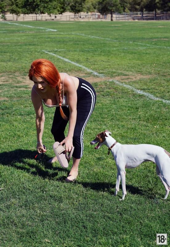 Кортни Стодден в жару как всегда подкачала, брызгая водой на себя и на собаку, а фото с этой прогулки точно поднимет температуру. Смотришь и не можешь оторвать глаз от её телодвижений, особенно когда она улыбается. Фото этой девчонки — чистая пыльная сексуальная бомба.