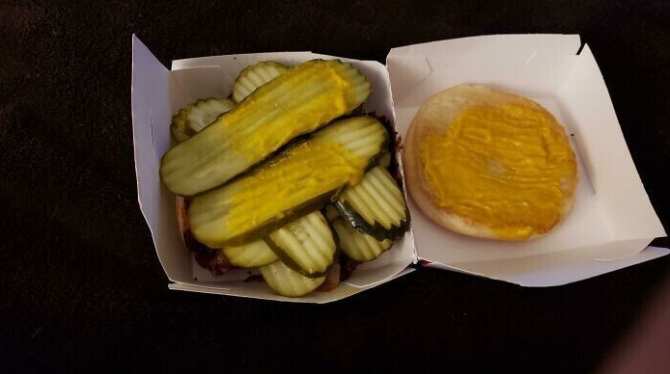 "Этот ресторан сразил меня, исполнив мою просьбу добавить "немного" соленых огурцов в бургер"