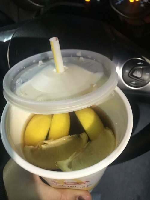 "Попросила добавить лимон в чай. Задумывалась, будет небольшой кружочек, а там был целый лимон"