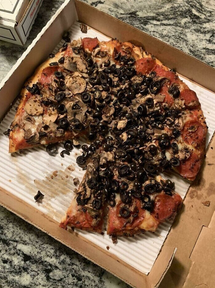 "А я вообщем не просила добавлять больше оливок либо грибов. Но это - вау!"