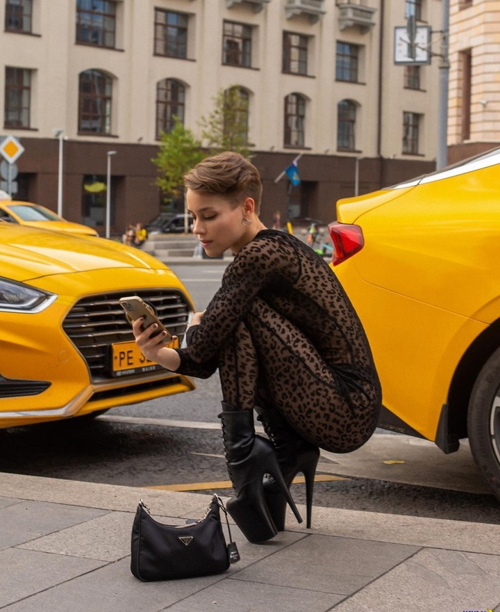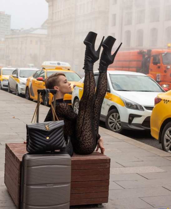 Много фоток модельки на тротуаре под катом.