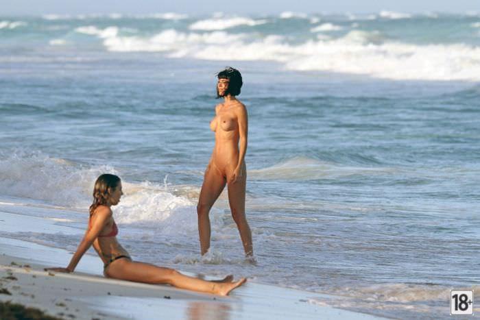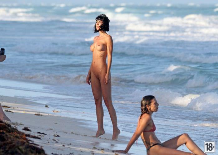 Эта шведско-французская красотка Мило Муаре, которая обожает светить своими сочными сиськами и упругой жопой в обнаженных перформансах, рисуя на голом теле всякую похабщину, теперь на мексиканском пляже скинула все и стоит в позе шлюшки, дразня всех раздвинутыми бедрами. Смотри, как она виляет голой задницей под солнцем, заводя парней до предела своими формами.