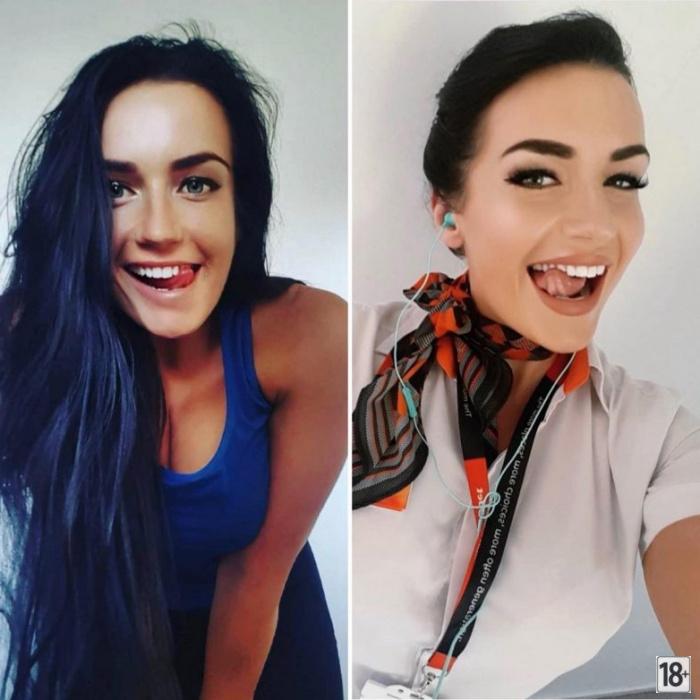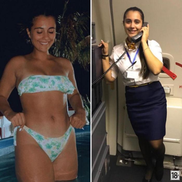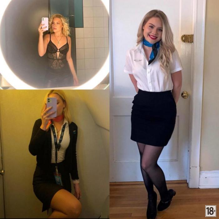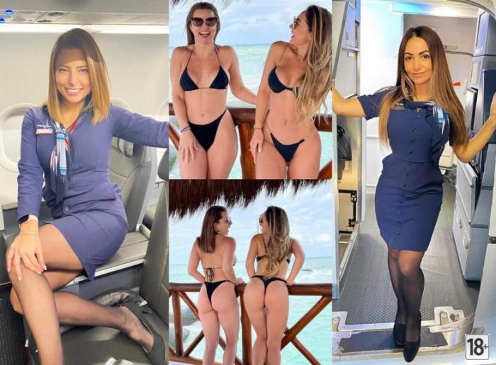Королевы неба в тесной форме и догола — сплошной соблазн на высоте! Эти стюардессы такие аппетитные, с торчащими сиськами и круглыми жопками, виляют ими в униформе и манят сочными формами без единой тряпочки. Хочется схватить и отыметь каждую прямо в салоне.