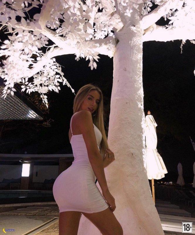 Сразу просвечивает голенькая киска под этим платьем, аж слюнки текут! Короткое облегающее платьице-чулок так липнет к телу, что без трусиков всё на виду и манит потрогать.