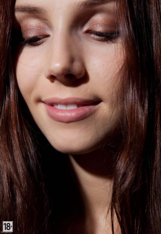Кареглазая сучка так похотливо стягивает с себя колготки, что аж бедра ее сочные блещут от желания. Медленно спускает их вниз, дразня взглядом и намекая на все, что спрятано под ними. Смотришь — и сразу член встает от этой развратной игры.