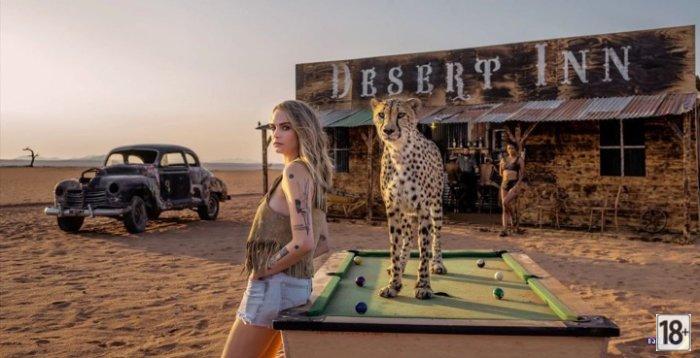 Фото Кари Делевинь в обнаженном виде рядом с гепардом заставляет задуматься. В потрясающей съемке она показывает всё, что может, рядом с диким зверем. Модель лежит на песке, её татуировки явно на виду, а гепард держит стражу. Снято талантливым фотографом, это смелое сочетание красоты и дикой силы. Яркая поза на фоне пустыни — настоящий визуальный кайф.