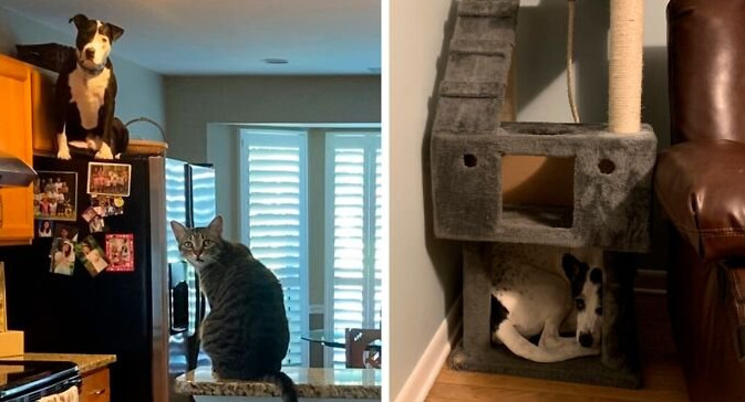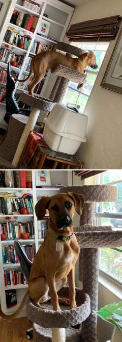 Оказывается, достаточно много собак с кошачьими манерами. Им нравится лазить по холодильникам и деревьям, после чего они укладываются в коробки, чтобы вздремнуть. Поглядите забавные фото в качестве подтверждения.