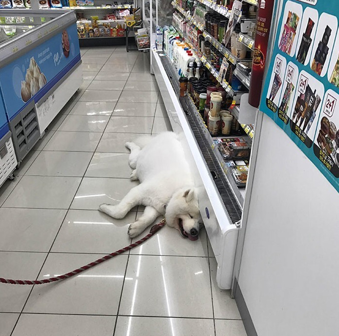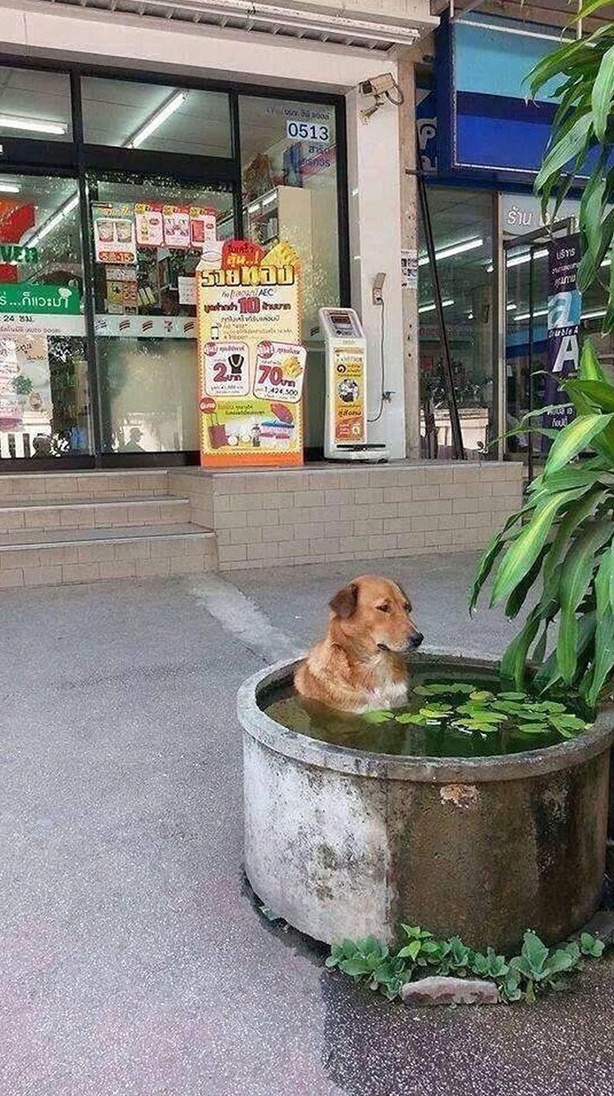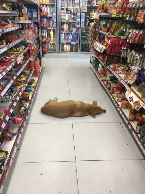 16. Из-за мощной жары(40°C)в магазин пустили охладиться бродячего пса