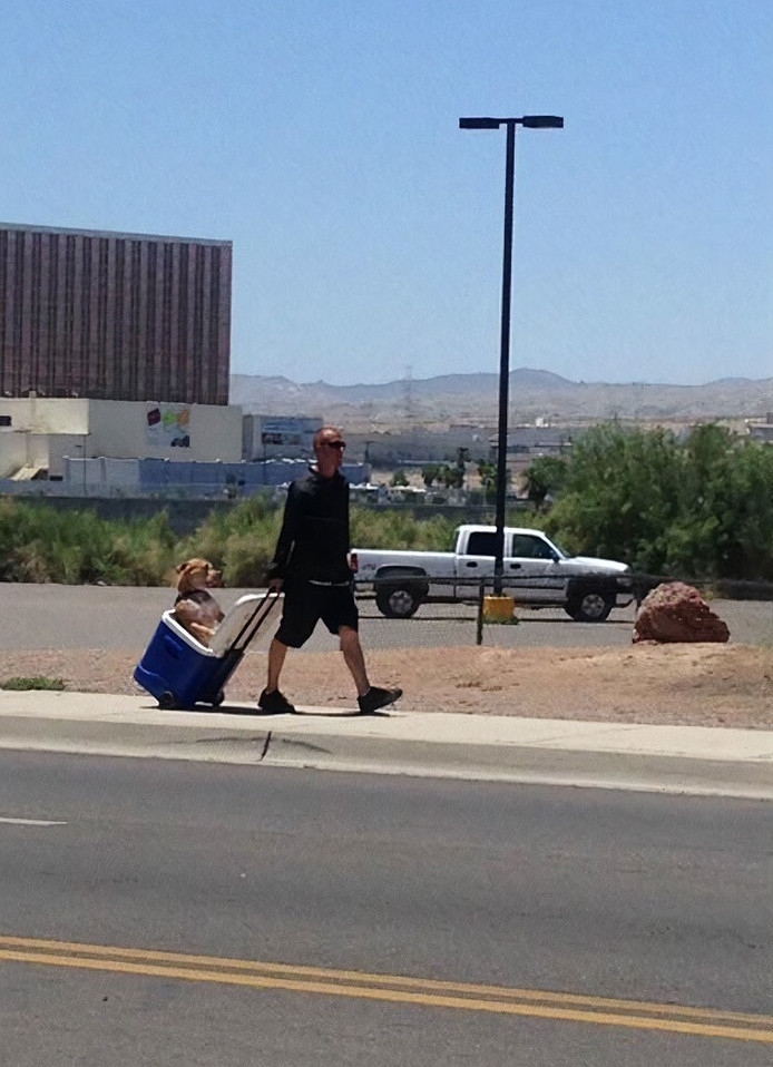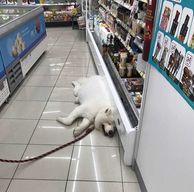 3. Парень не желал, чтобы его пес обжег лапы о горячий асфальт, и посадил его в мини-холодильник