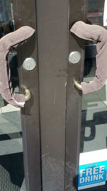24. В Калифорнии так горячо, что владелец заправки замотал дверные ручки, чтобы гости не обожглись