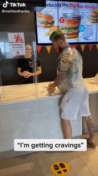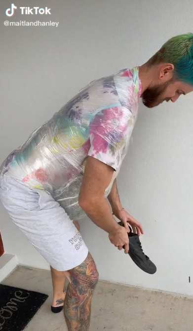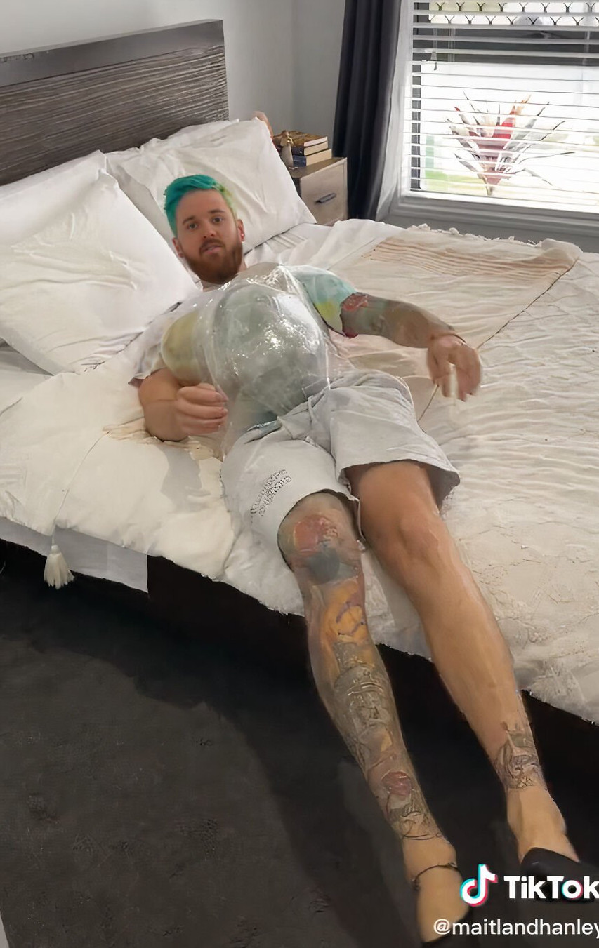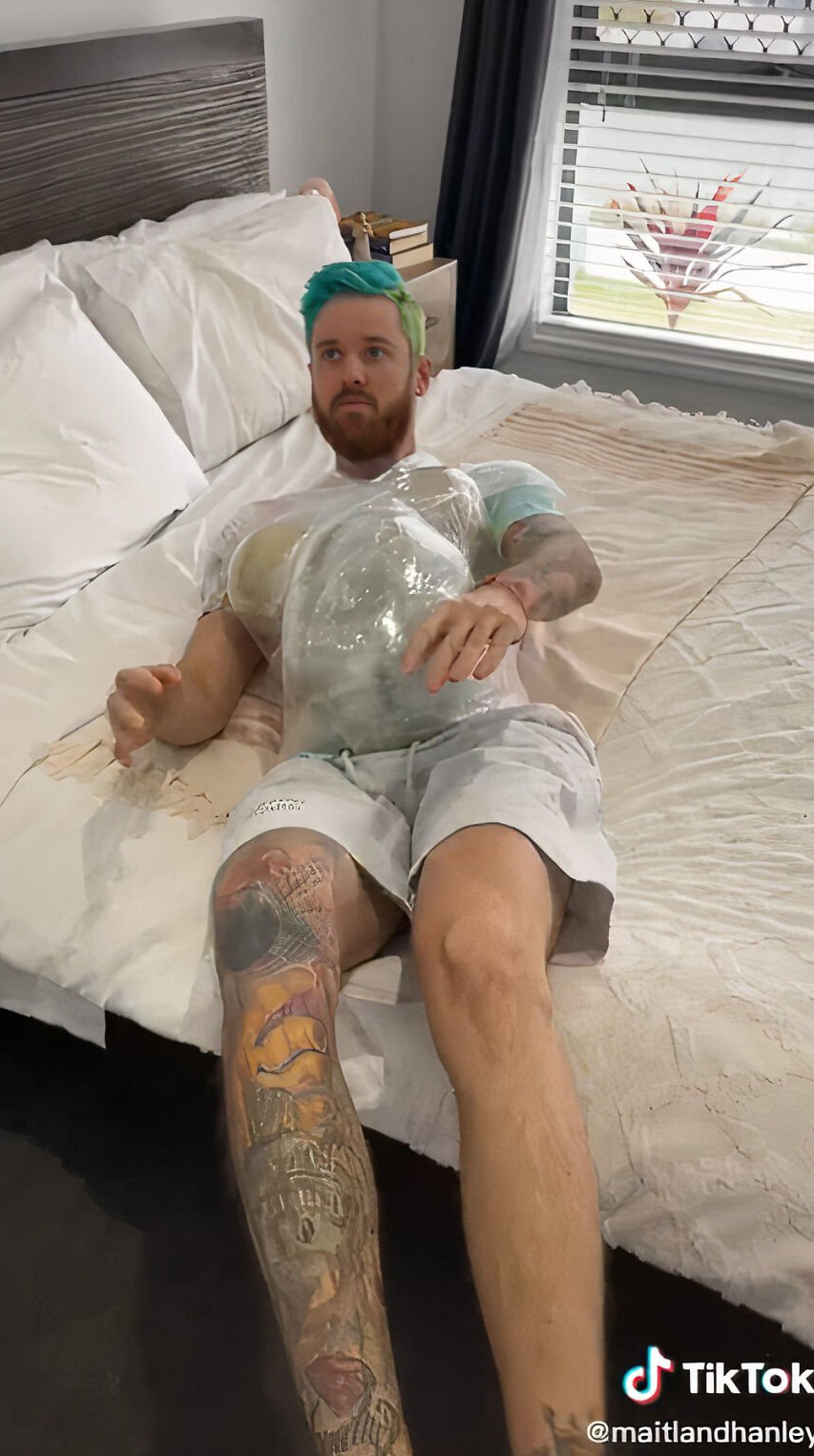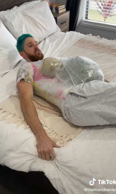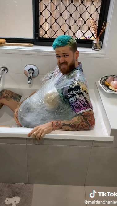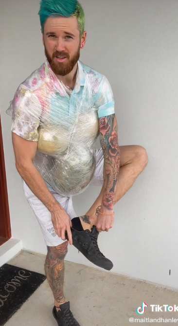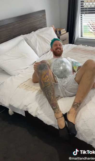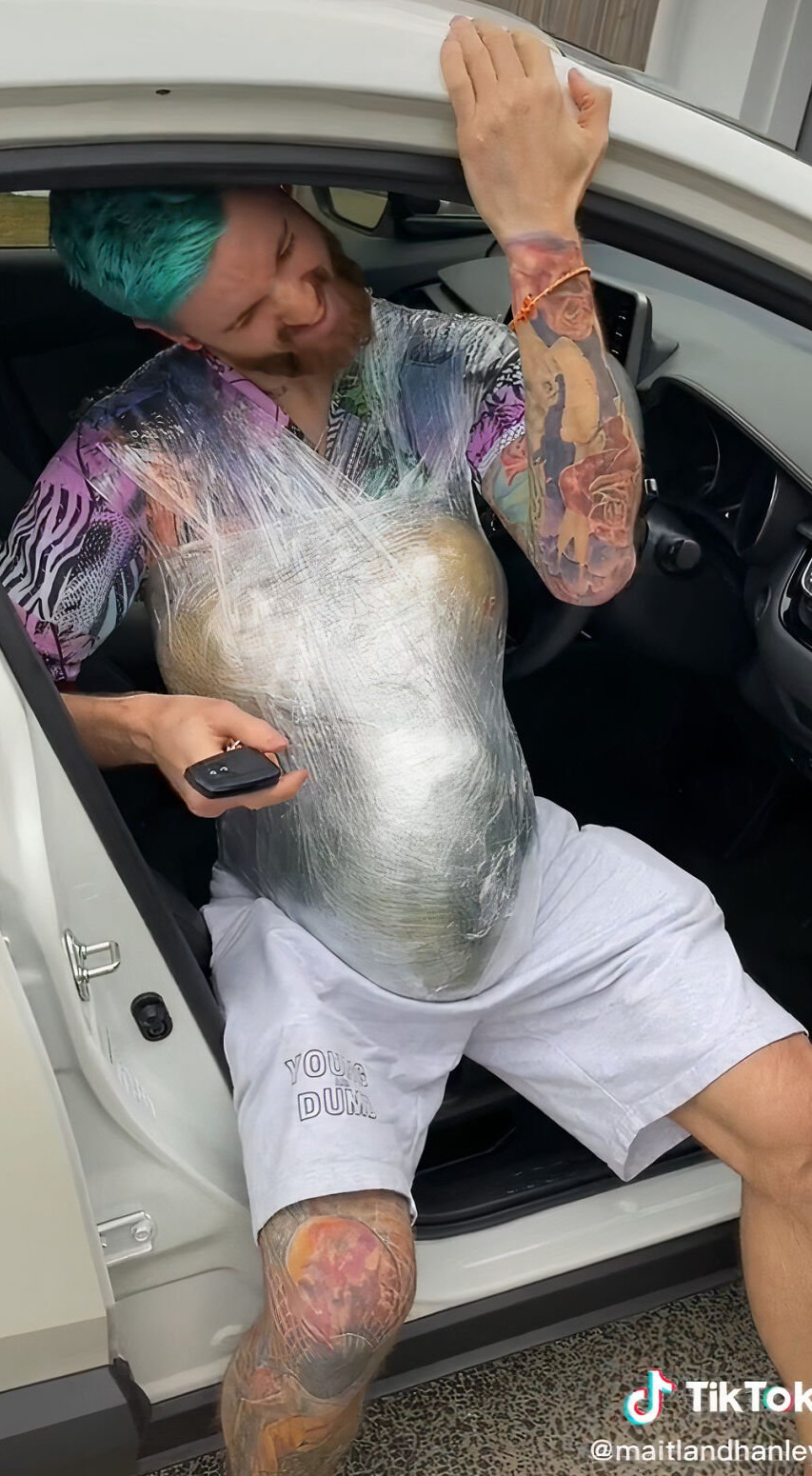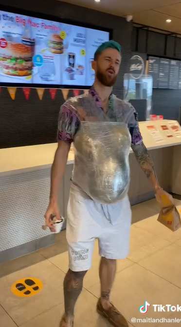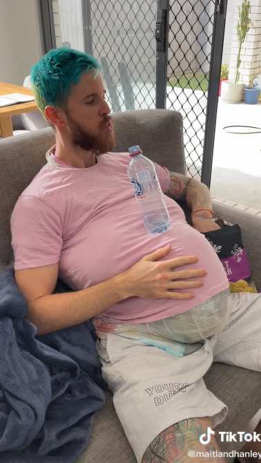 Австралийский мужчина по имени Мейтленд Хэнли решил провести маленькой эксперимент, он привязал три дыни себе к животу пищевой пленкой и попробовал прочувствовать чувства женщины с огромным животиком.
