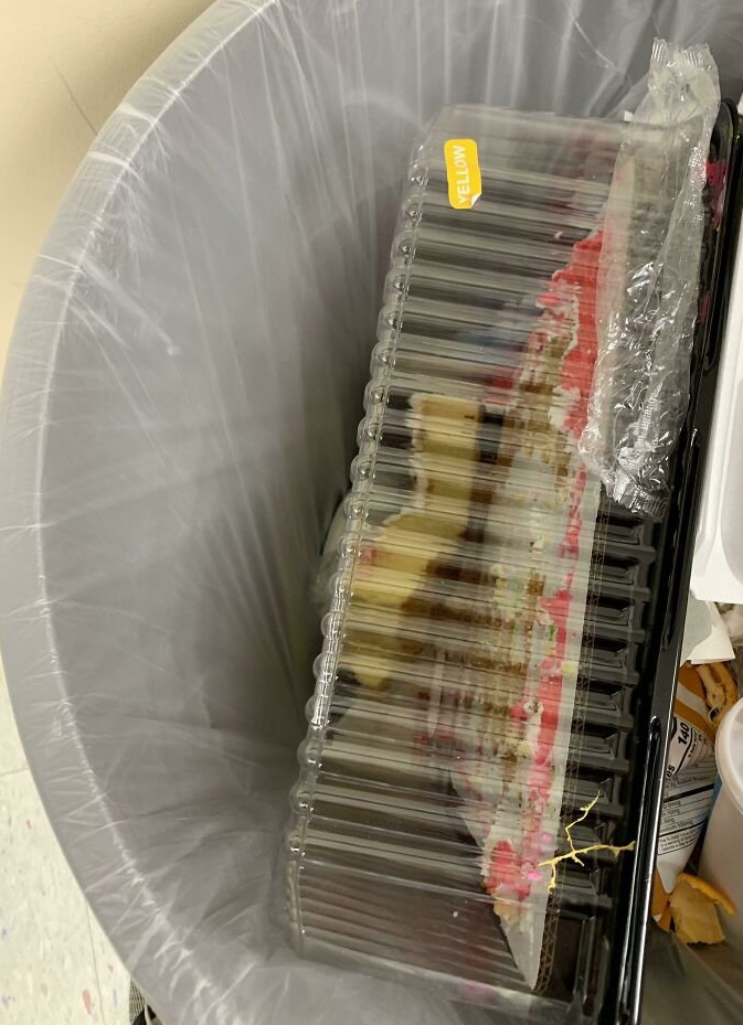 Кто-то выбросил остаток моего торжественного тортика до того, как я сумел забрать его домой