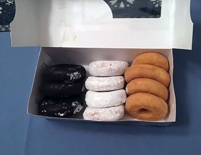 Один в день рождения, зато упаковка пончиков со мной