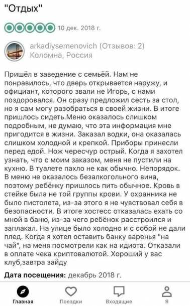 Вы дкмаете, их пишут только для того чтобы поделиться своими впечатлениями о месте, товаре либо услуге?А читают, чтобы составить предварительное мировоззрение?Как бы не так: там же встречаются истинные шедевры юмористического жанра))