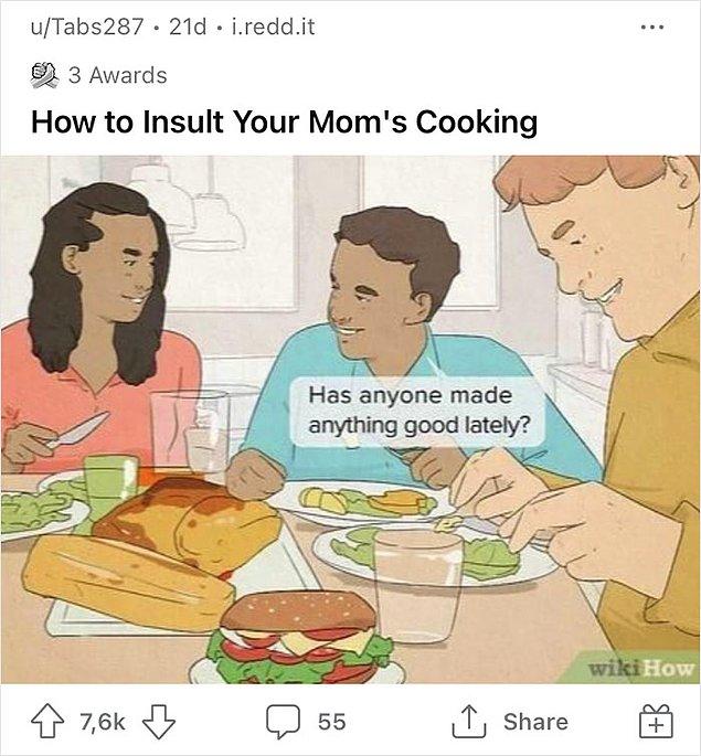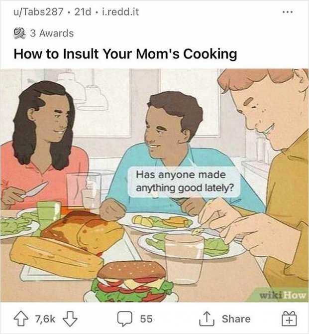 13. Как оскорбить готовку мамы: "Кто-нибудь сделал сейчас что-то не плохое?"