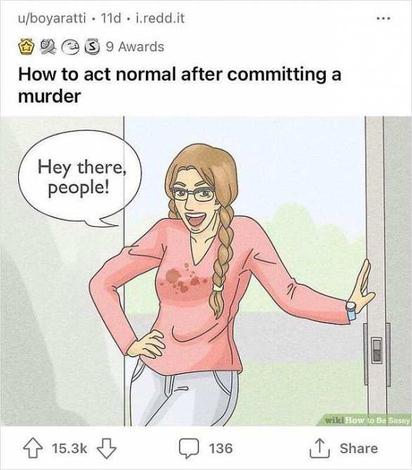 4. Как вести себя нормально после совершения убийства: "Ей, приветик ребятки!"