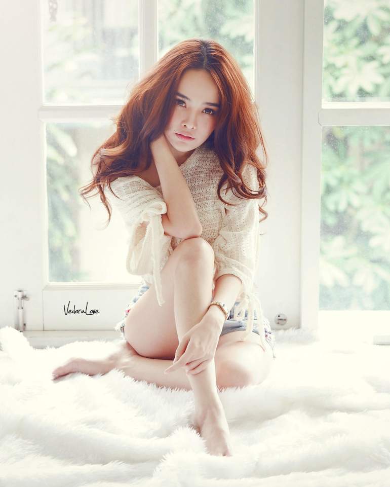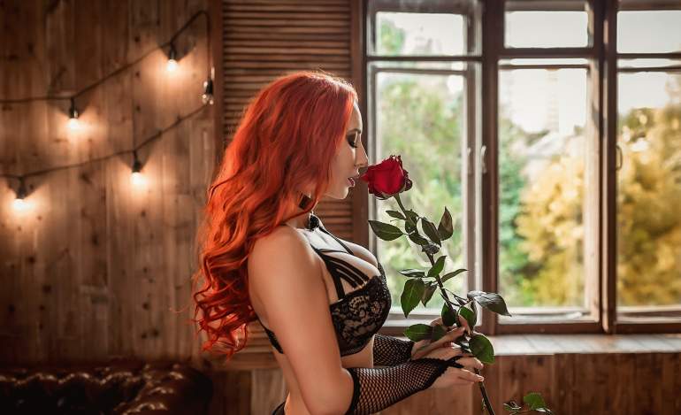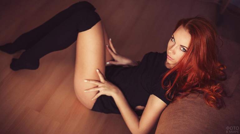 Стройная девушка красавица с длинноватыми волосами рыжими