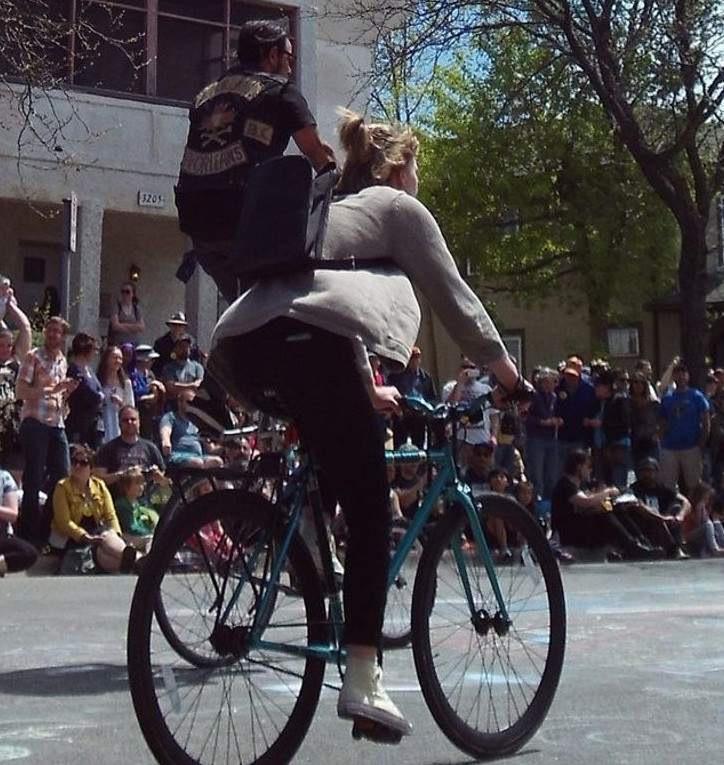 13. “Крошечный мужчина, едущий на женщине на велосипеде”