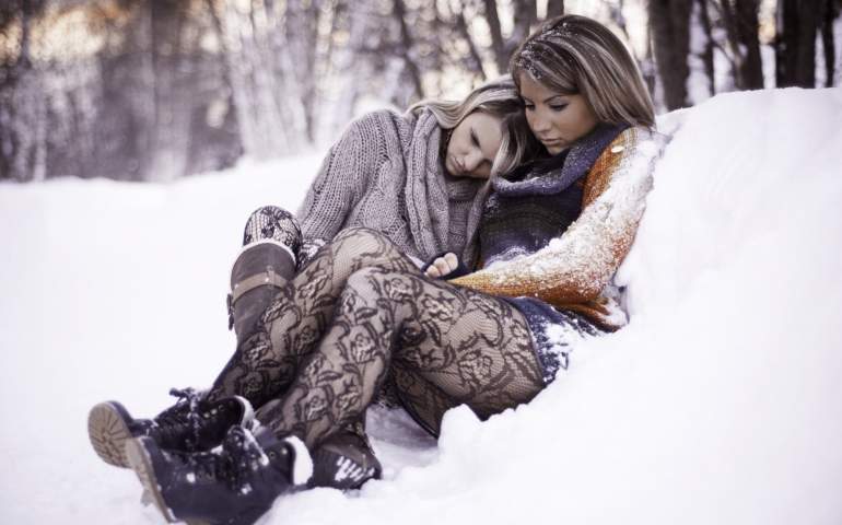 Девушки в зимнюю пору в юбках