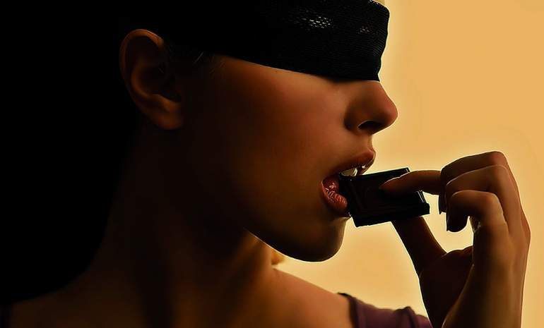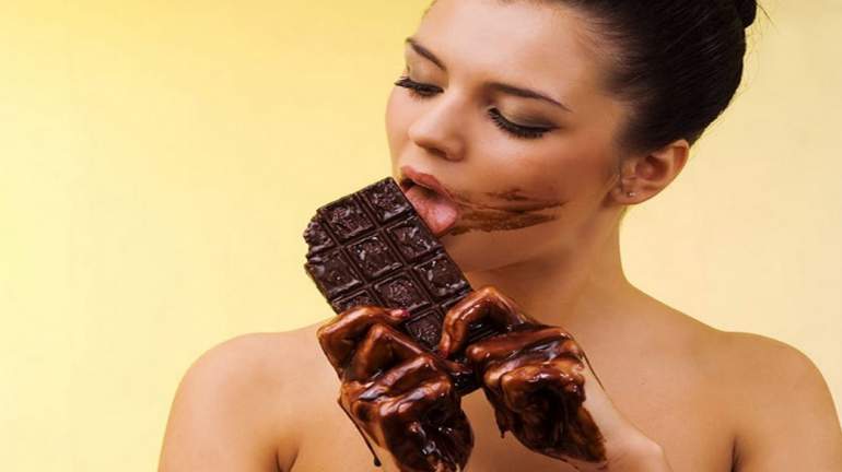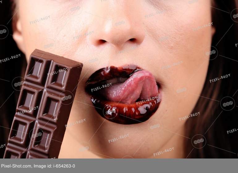 Дама есть шоколад сексуально