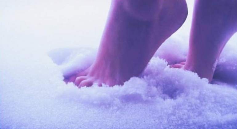 Бег с босыми ногами по снегу