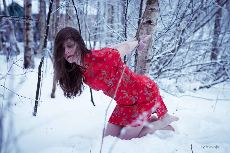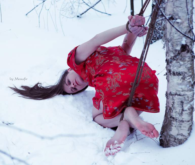 Шибари на снегу