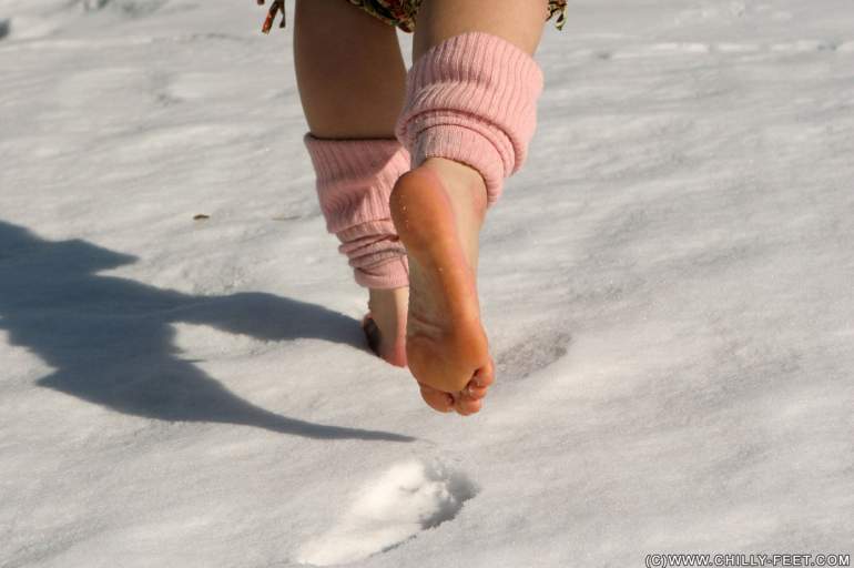 С босыми ногами по снегу