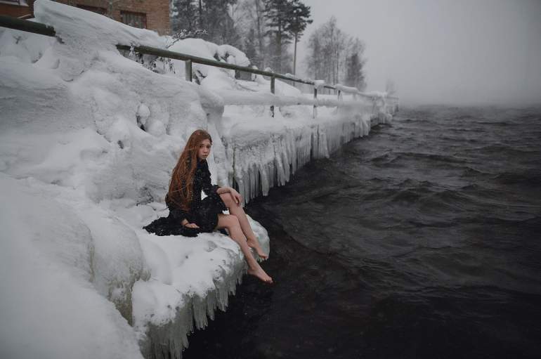 Зимняя фотосессия босиком