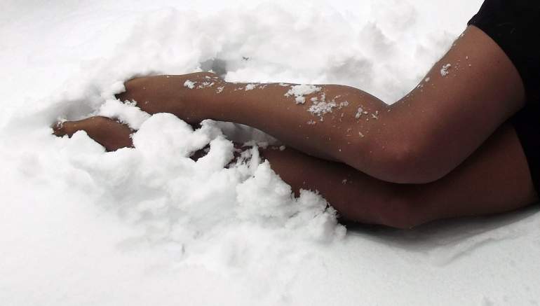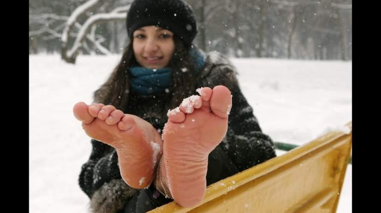 Девушки с босыми ногами на снегу