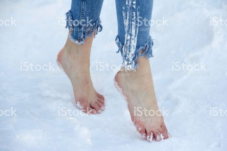 Босые ноги на снегу