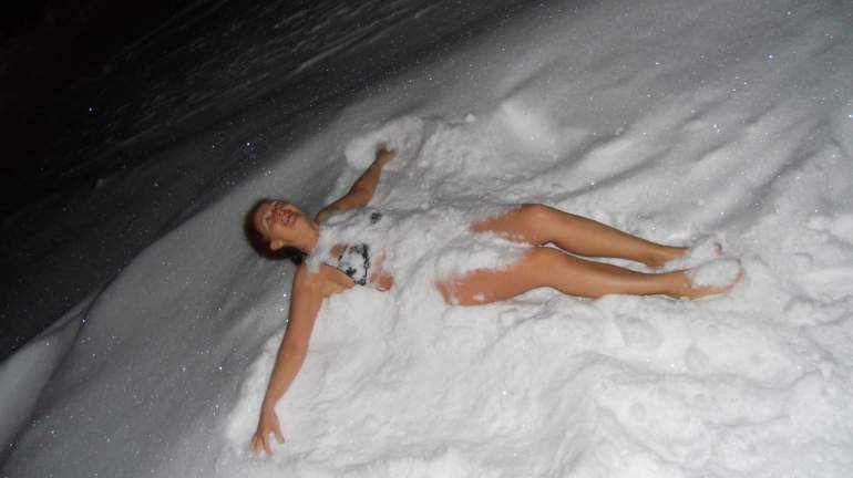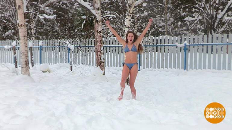 В зимнюю пору в купальнике на даче