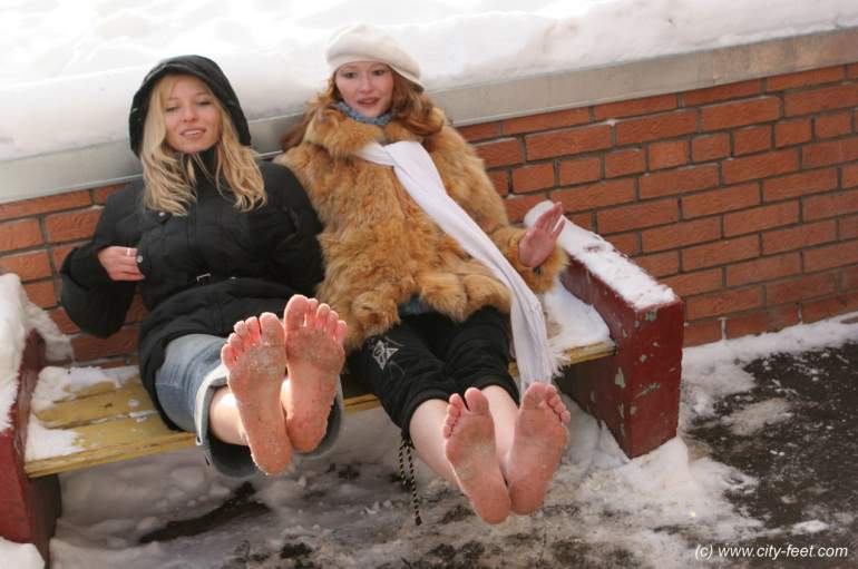 Девушки в зимнюю пору босиком