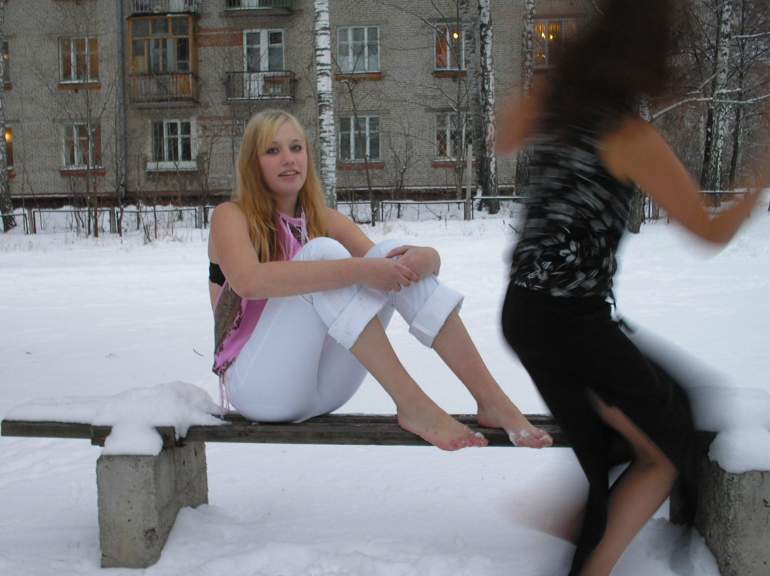 Босые девушки на морозе