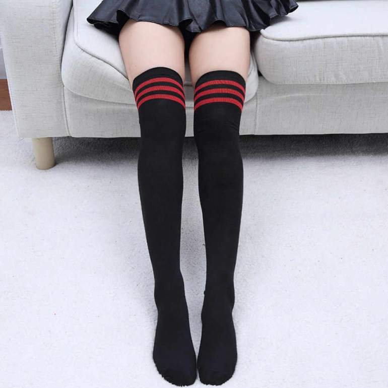 Очень сексуальные ноги девушки в чулках и кроссовках