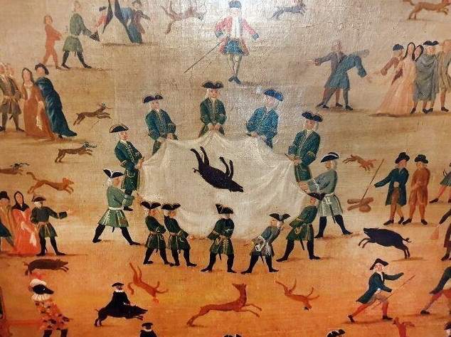 Этот ожесточенный вид спорта приводил к погибели лисы точнее, чем если бы ее преследовали гончие. Лисицу в клеточке выпускали на арену, где она бегала по «подпрыгивающей ткани», с помощью сетки или веревки натянутой между 2-мя людьми. Когда лиса пробегала по ткани, двое людей тянули ее, отправляя животное высоко в воздух. Команда, которой удалось подбросить лису выше всех, становилась победителем. А самым огромным проигравшим была лиса: она погибала при падении, или ее забивали до погибели. Говорят, что