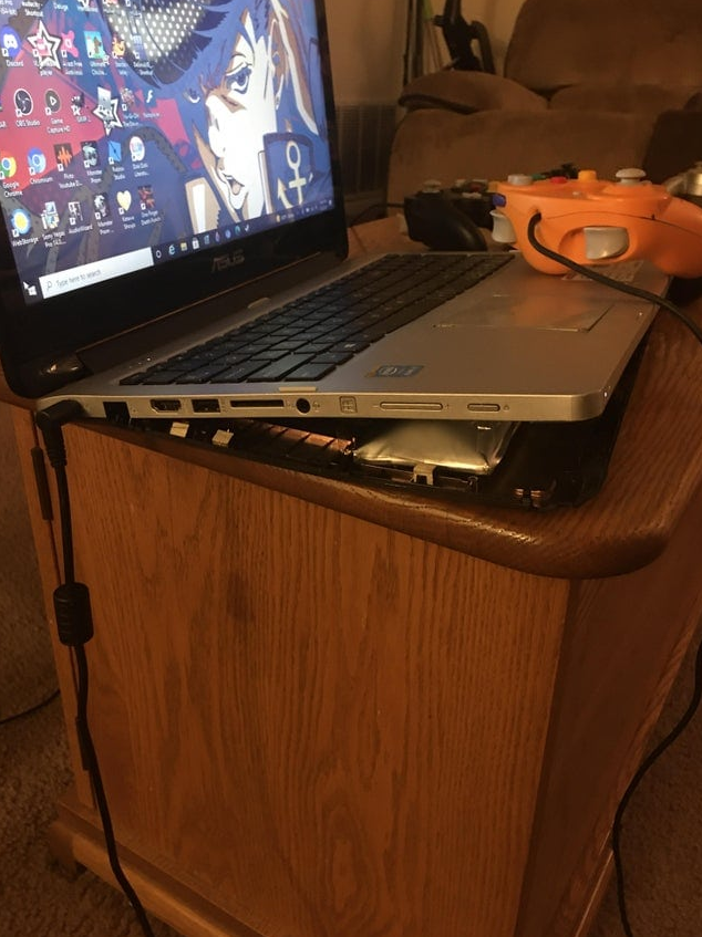 Я выезжал на машине друга и сдал назад, заехав на бордюр... Бордюром оказался мой компьютер, который я запамятовал убрать в багажник машины.