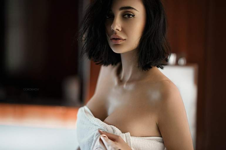 Девушка красавица с каре в белье
