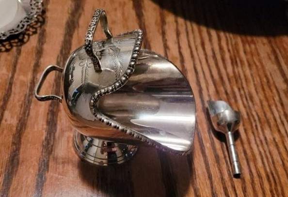 Такую ёмкость употребляли, чтобы сметать туда со стола крошки и золу