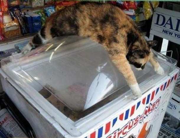 Кот охлаждается.