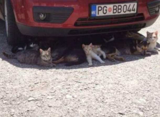 Смешные коты под машинкой.