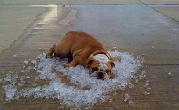 Собака спасается от жары.