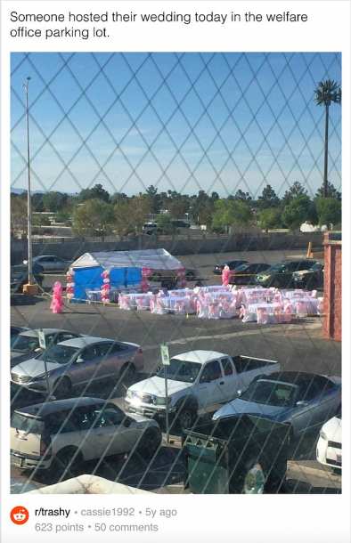 3. А эту свадьбу решили провести на свежайшем воздухе - на парковке супермаркета.