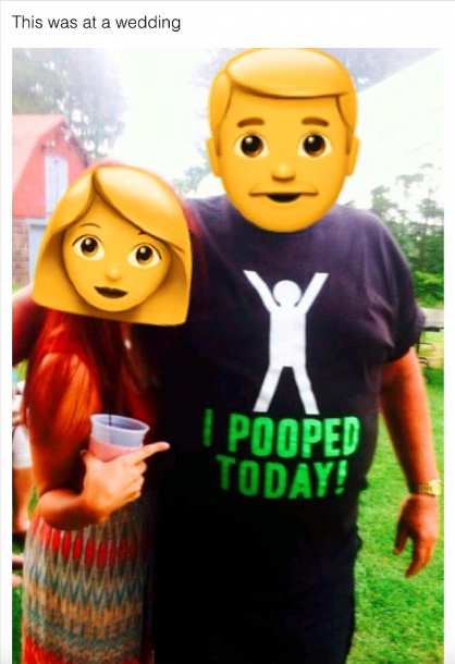 6. Этот гость избрал лучшую футболку для свадьбы своих друзей(надпись: "Я сейчас покакал!")