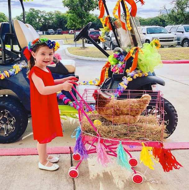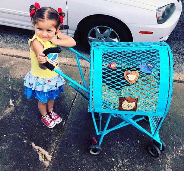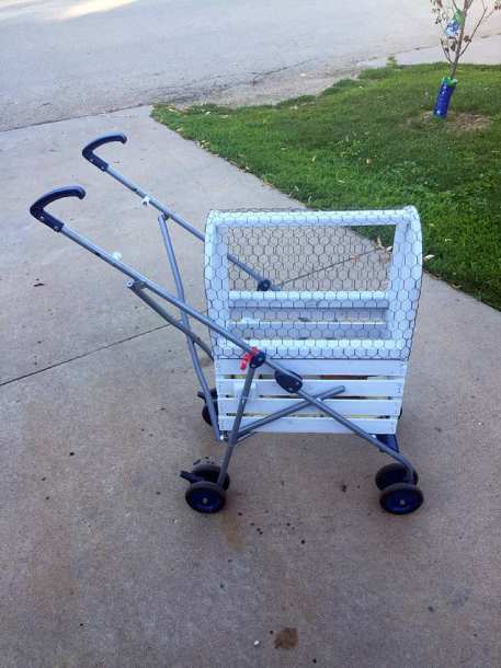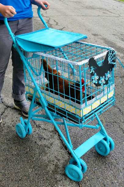 3. Чтобы курица не удрала куда глаза глядят, для нее сооружают вот такую симпатичную коляску для прогулок.