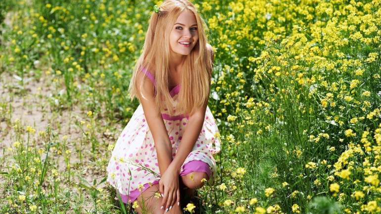 Красивая девушка в солнечном платье