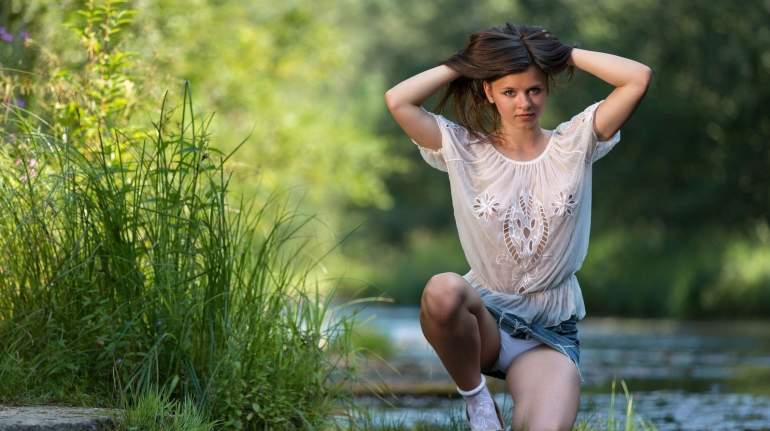 Красивая девушка на реке